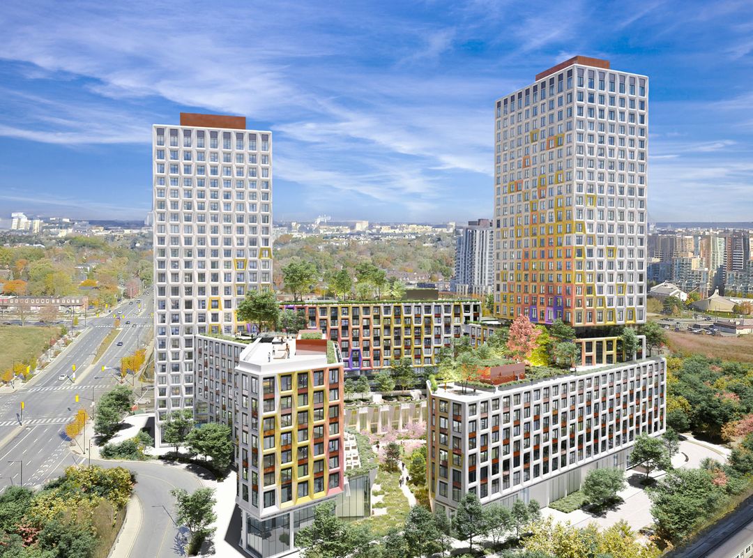 Located near the Kipling Transit Hub, the project will deliver 725 residential homes, including 218 affordable rental homes, as well as retail space and Publicly Accessible Spaces.